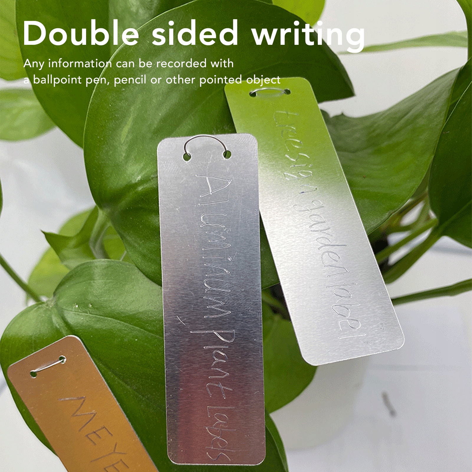 2. Pisanie z dwoma stronami: Tagi roślin zapewniają dużo miejsca na rejestrowanie wszelkich informacji z długopisem, ołówkiem lub innym spiczastym obiektem.