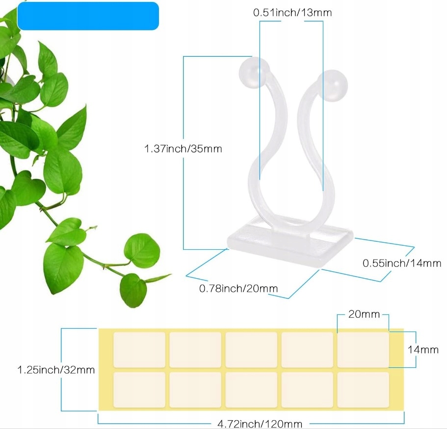 Wszechstronne Zastosowanie: Nasze samoprzylepne klipsy uchwyty są idealnym rozwiązaniem zarówno do domu, jak i ogrodu. Doskonale sprawdzą się przy mocowaniu roślin pnących, kabli, ozdób, lekkich przedmiotów oraz wielu innych elementów dekoracyjnych.