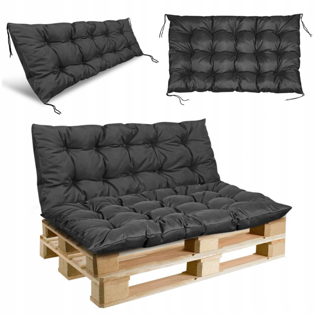 2 WODOODPORNE poduszki oparcie + siedzisko na ławkę z EUROPALET w kolorze czarnym, WYGODA i zadowolenie gwarantowane!