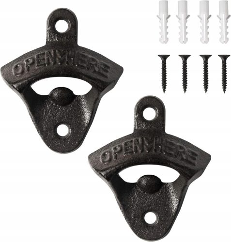 ①2 szt. żeliwny otwieracz do butelek montowany na ścianie vintage rustykalny ze śrubami samogwintującymi do domu ogrodu baru karaoke hotelu KH02