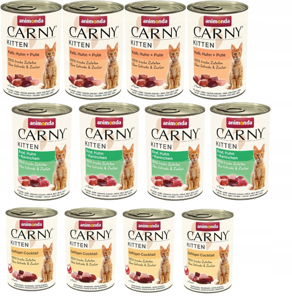 Soczysta i mięsna, dokładnie taka jak koty lubią! Animonda Carny Kitten to karma mokra dostosowana do potrzeb rozwijających się kotów. Do zdrowego wzrostu i optymalnego startu w długie, kocie życie Twój pupil potrzebuje przede wszystkim dużej ilości białka zwierzęcego. Właśnie dlatego receptura karmy składa się wyłącznie z wyselekcjonowanych rodzajów mięs wysokiej jakości. Świeża i delikatnie przygotowywana karma spełnia potrzeby żywieniowe rosnących kotów.
