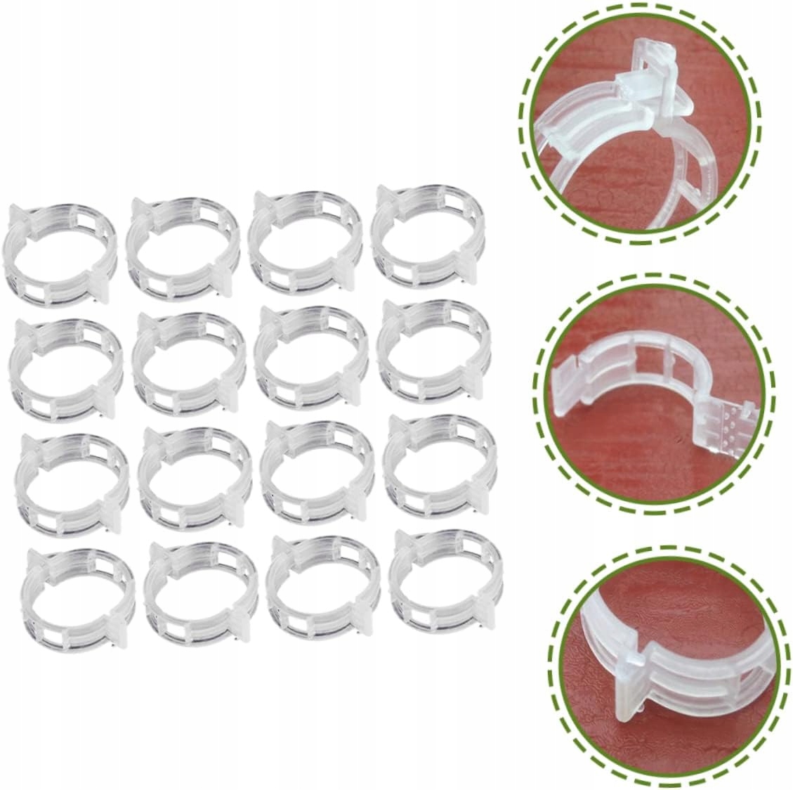 Winorośl cecha odporna na warunki atmosferyczne i nierdzewna będzie wielokrotnego użytku przez kilka sezonów. Wiązanie roślin warzywnych te klipsy do roślin ogrodowych nadają się do podtrzymywania łodyg winorośli i łodyg. Klipsy podtrzymujące rośliny dzięki doskonałemu kunsztowi są stabilne i praktyczne w użyciu oraz niełatwo spaść. Klips do roślin ogrodowych charakteryzuje się znakomitym wykonaniem które gwarantuje praktyczność i trwałość. Klipsy do roślin pnących szeroko stosowane do uprawy roślin pomidorów ogórków papryki winorośli lub warzyw ogrodowych w pozycji pionowej. Ostrzeżenie Nie nadaje się dla dzieci poniżej 10 roku życia. Do użytku pod nadzorem osoby dorosłej Ostrzeżenie Wyłącznie do użytku domowego