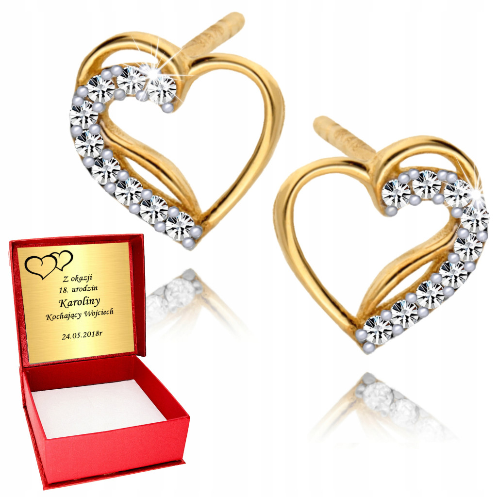 Piękne złote kolczyki serca, serduszka wysadzane cyrkoniami zapinane na sztyfty wykonane w całości ze złota próby 333 (8 karatowego).
