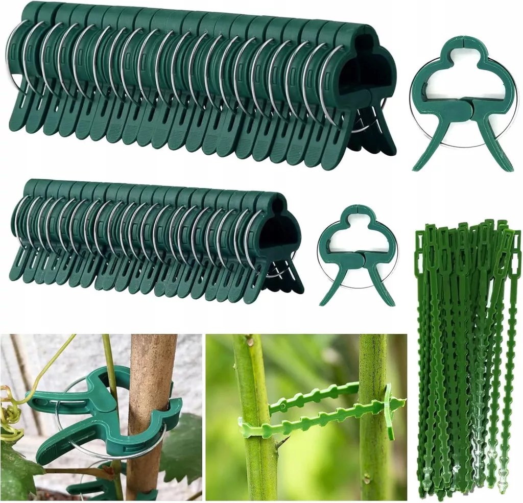 Materiał premium nasz zestaw klamerek do roślin pnących jest wykonany z doskonałego tworzywa sztucznego i metalu. Gładkie krawędzie przyjazne dla środowiska nietoksyczne bezzapachowe trwałe nie utrudniają wzrostu roślin i chronią je przed złymi warunkami atmosferycznymi. Łatwe zastosowanie klipsy ogrodowe do roślin wspinaczkowych są elastyczne i łatwe w użyciu nadają się do ponownego użytku są łatwe do założenia i zdejmowania. Trzonek należy trzymać jedną ręką a rośliny nie będą węzłowe. Wystarczy nacisnąć lub odkręcić uchwyt aby mocno chwycić łodygi i sadzonki i chronić rośliny. Idealne wsparcie roślin te klamerki do roślin mogą podpierać lub mocować aby wytrzymać silne wiatry łodygi i rośliny można elastycznie łączyć aby wspierać wzrost roślin bez ich uszkodzeń. Pomóż swoim roślinom kwiatom lub winorośli pod kontrolą. Opakowanie otrzymasz 30 dużych zacisków do roślin 30 małych zacisków do roślin i 30 sztuk opasek do roślin aby sprostać różnym wymaganiom dotyczącym wieszania roślin. Duży klips 45 x 6 cm mały klips 3 x 45 cm opaski na rośliny 17 cm. Szerokie zastosowanie te klipsy nadają się do sadzenia drzew warzyw i roślin pnących. Stojak można łatwo zamocować na kwiatach drzewach warzywach paprykach ogórkach roślinach pokojowych lub wszystkim co zapewnia wsparcie roślin. Idealny do większości prac ogrodowych. Klipsy ogrodowe można zamocować w domu w sklepie z kwiatami w biurze i w innych miejscach.