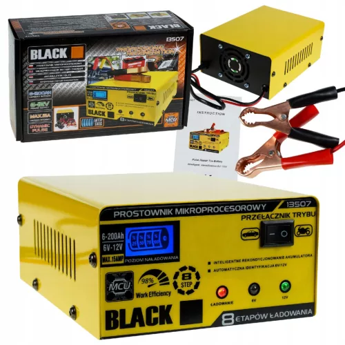 Prostownik jest w stanie ładować akumulatory o pojemności 6Ah-200Ah i napięciu 6V i 12V
