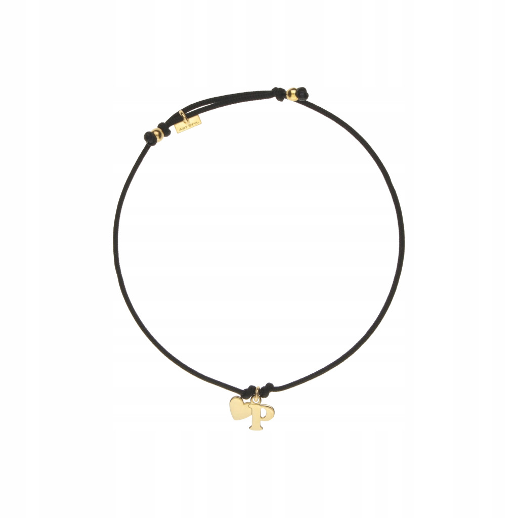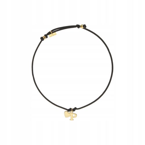 Piękna pozłacana bransoletka typu „celebrytka” z zawieszką w kształcie literki "P" i pełnego serduszka. Elementy srebrne wykonane są w całości z wysokiej próby srebra 925, wierzchnia warstwa pokryta jest złotem 0,5µ. Bransoletka sznurkowa z możliwością regulacji sprawia, że bransoletka pasuje na każdą dłoń.
