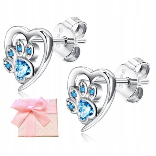 Piękne kolczyki dla dziewczynki łapki, wykonane z najwyższej jakości srebra rodowanego pr. 925, ozdobione błękitną cyrkonią w kształcie serca.