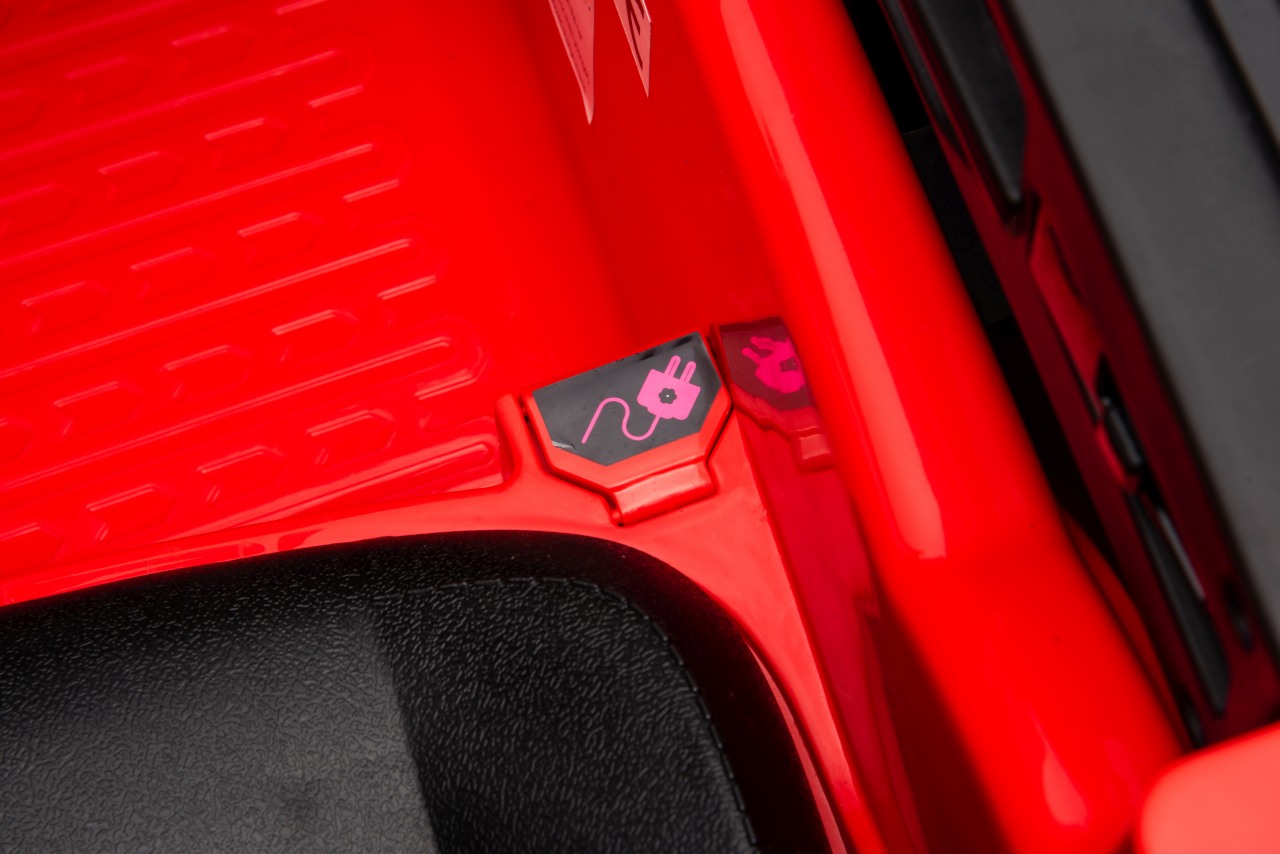 Panel audio z wejściami USB, MP3, AUX oraz połączeniem Bluetooth umożliwia odtwarzanie ulubionej muzyki lub bajek. Dodatkowo, kierownica wyposażona jest w przyciski dźwiękowe oraz klakson, co sprawia, że każda jazda jest ekscytująca.