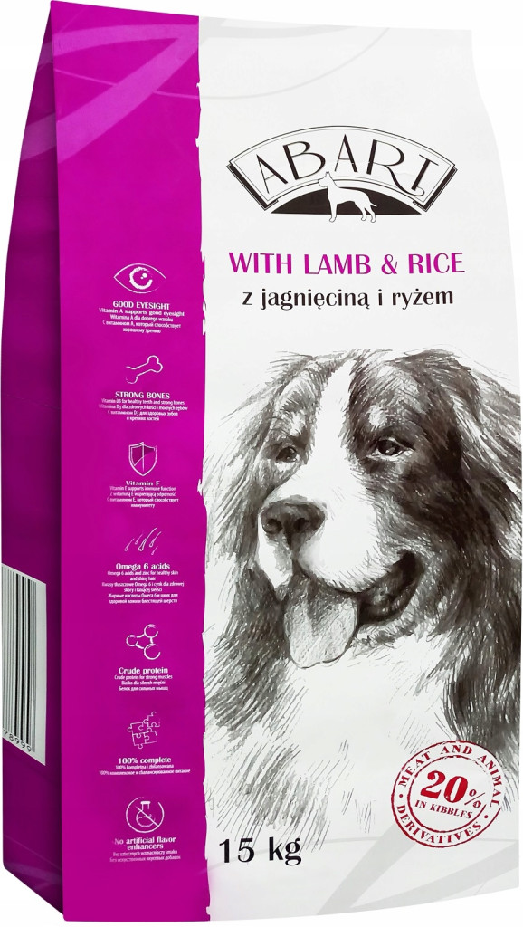 Skład: zboża (4% ryż), mięso i produkty pochodzenia zwierzęcego (min. 20% w tym min. 4% jagnięciny), produkty pochodzenia roślinnego, oleje i tłuszcze, substancje mineralne.
