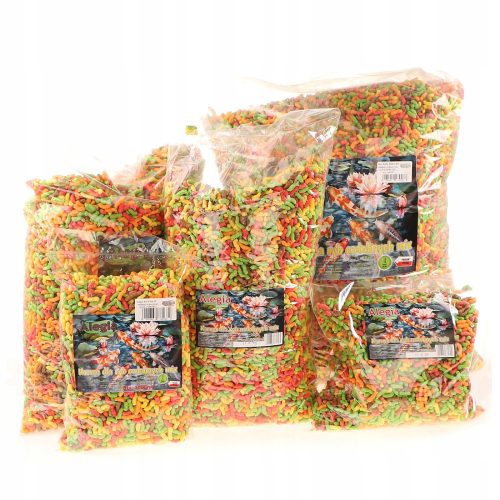 Alegia Koi Mix Pałeczkito pływający pokarm dla ryb oczkowych. Jest to niezwykle wartościowy pokarm dla wszystkich ozdobnych ryb oczkowych.