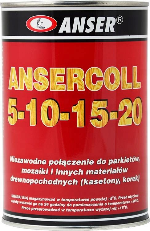 Klej do parkietów ANSERCOLL 5-10-15-20 produkowany jest na bazie modyfikowanego kauczuku styrenowo-butadienowego z dodatkiem żywic naturalnych.
