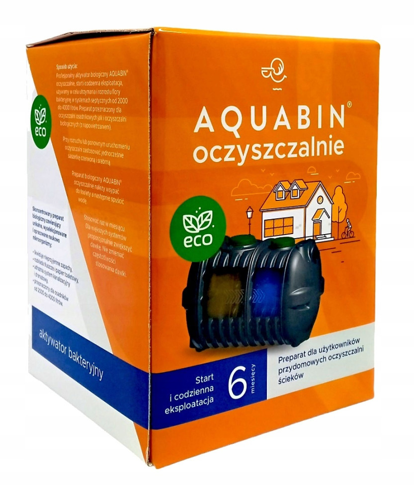 Profesjonalny aktywator biologiczny AQUABIN® oczyszczalnie start i codzienna eksploatacja, używamy w celu utrzymania i rozrostu flory bakteryjnej w systemach septycznych od 2000 do 4000 litrów. Preparat przeznaczony dla oczyszczalni osadnikowych jak i oczyszczalni biologicznych (z napowietrzaniem). Przy rozruchu lub ponownym uruchomieniu oczyszczalni zastosować jednocześnie saszetkę czerwoną i srebrną. Preparat biologiczny AQUABIN® oczyszczanie należy wsypać do toalety a następnie spuścić wodę. Stosować raz w miesiącu. Dla większych systemów proporcjonalnie zwiększyć dawkę. Nie zmieniać częstotliwości stosowania dawki.