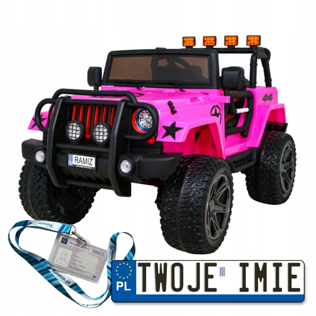 Auto terenowe typu jeep Monster 4x4 dla dzieci Różowy + Pilot + Regulacja siedzenia + Wolny Start + MP3 LED + Bagażnik + Plecak [PA.WXE1688.ROZ]