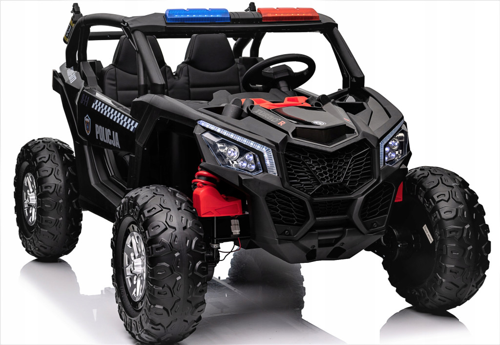 Pojazd napędzany czterema mocnymi silnikami 24V zasilanymi akumulatorem. Posiada wolny start- płynne ruszanie. Jest duży, bezpieczny, Łatwy w obsłudze i bardzo mocny. Spokojnie pokonuje małe nierówności, dla najmłodszych fanów motoryzacji. Posiada wygodne siedzenia, wyposażone w pas bezpieczeństwa oraz pilot zdalnego sterowania dla rodzica, który pozwala sterować samochodem w przód i tył a także w lewo i prawo. Za pomocą pilota można również zatrzymać pojazd.