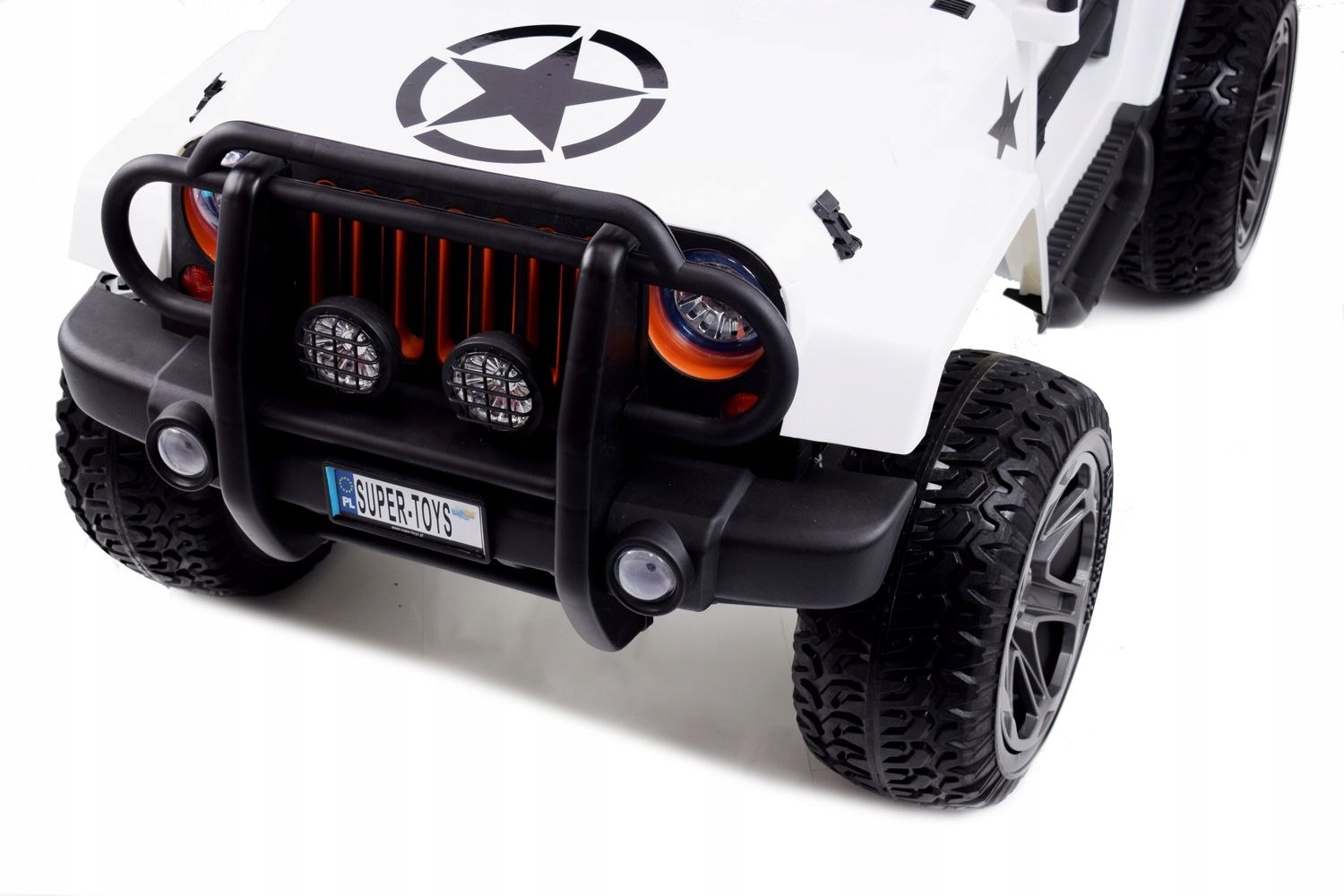 AUTO MEGA JEEP 4X4 Z REDUKTOREM NAPĘDU 2X2 LUB 4X4 EXCLUSIVE z systemem ESW - system wolnego startu i hamulcem oraz z kołami EVA zasilane na dwa akumulatory 12 V z napędem na dwa lub cztery koła zachwyci nie jednego przyszłego kierowcę. Dzięki zastosowanym najmocniejszym silnikom 45 W, auto jeździ po nierównym terenie bez żadnych problemów - posiada olbrzymie miękkie koła EVA, Najciekawszą funkcją pojazdu jest SYSTEM WOLNEGO STARTU, oraz SYSTEM HAMOWANIA Z PILOTA Z FUNKCJĄ BLOKADY JAZDY MANUALNEJ