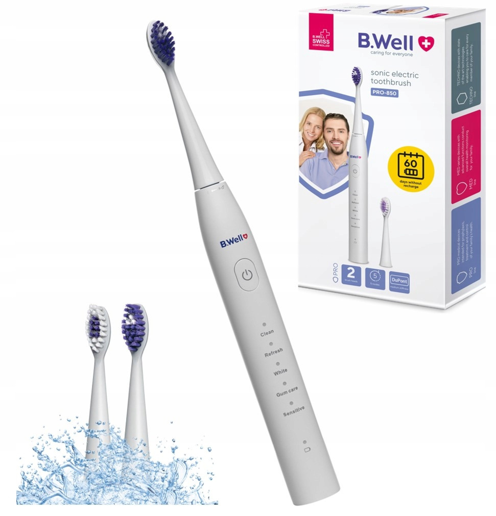 Szczoteczka soniczna B.Well została wyposażona w dwa automatyczne timery, uruchamiające się wraz z jej włączeniem.