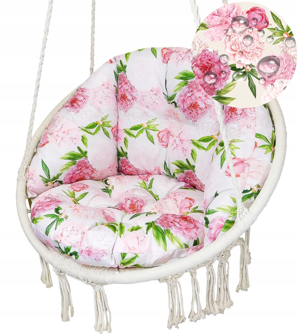 ✅ Poduszka składa się z dwóch elementów integralnie ze sobą połączonych (oparcia z bocznymi skrzydłami oraz siedziska w kształcie koła o średnicy 60 cm), zszytych w spójną całość. Dzięki temu poduszka idealnie wypełnia wnętrze huśtawki i sprawia, że wypoczynek na niej to prawdziwa przyjemność.