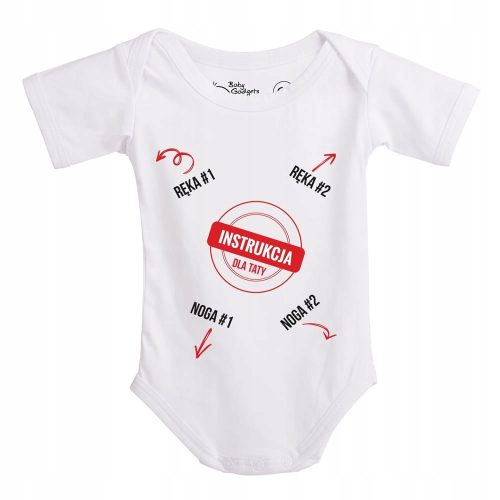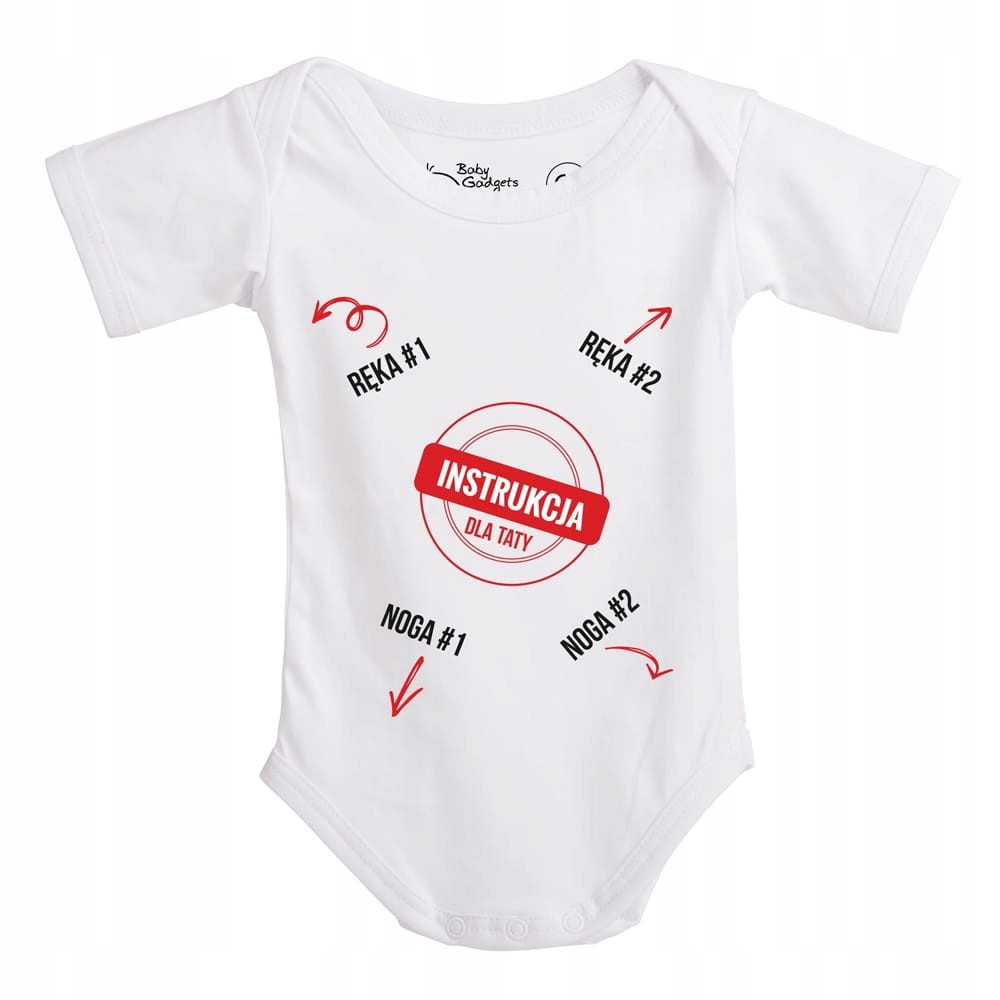 Body z instrukcją dla Taty to śmieszny prezent na pępkowe, którego pomysłodawcą mógł być tylko i wyłącznie mężczyzna, który już sam przez to wszystko przechodził. Narodziny dziecka to ogromne ale i bardzo stresujące wydarzenie dla Młodego Taty - taki prezent pozwoli mu spojrzeć z dystansem na nową sytuację. Jeżeli Twój kolega właśnie został ojcem to śmieszny bodziak z instrukcją ubierania będzie dla niego idealnym prezentem z okazji narodzin dziecka. Podpowiedź dla Panów: gdyby body okazało się jeszcze za duże, maluch z pewnością szybko urośnie. :)