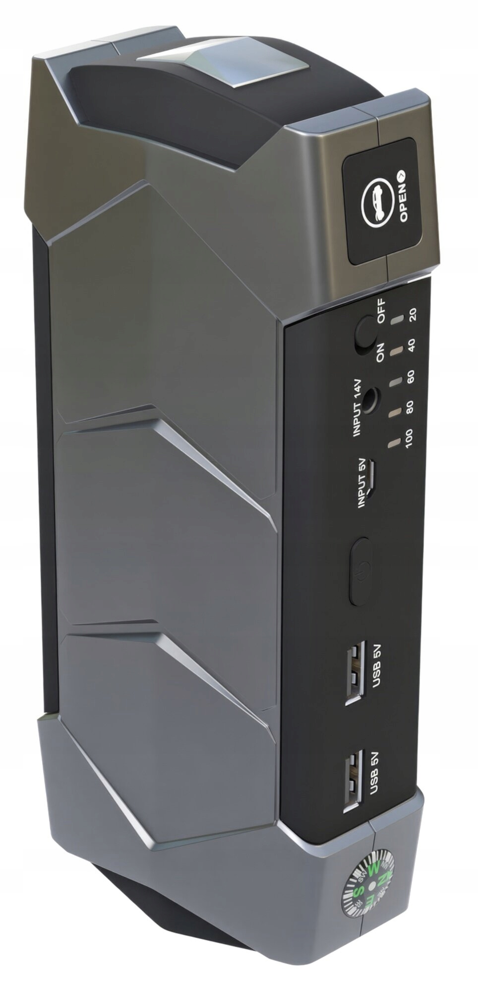 Wielofunkcyjne urządzenie rozruchowe jest przenośnym urządzeniem akumulatorowym o pojemności 10000 mAh, które umożliwia awaryjny rozruch pojazdu wyposażonego w 12-woltową baterię. Pozwala na uruchomienie samochodu, motocykla, quada, łodzi dodatkowo naładują tablet, telefon, nawigację i wiele innych urządzeń.