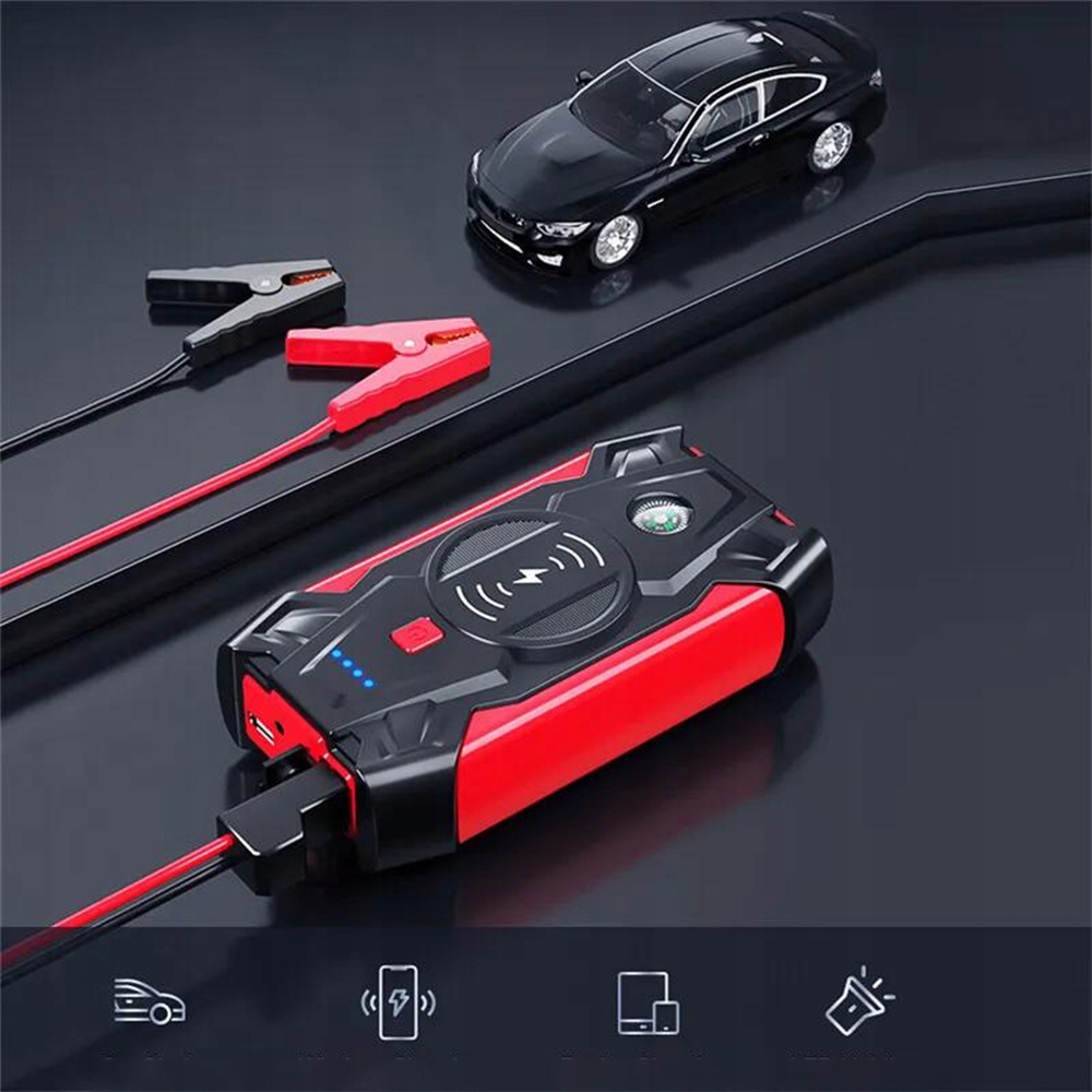 • ⚡ - Może być używany jako awaryjny zasilacz rozrusznika dla pojazdów z silnikiem Diesla i benzyną 12 V, a także obsługuje bezprzewodowe ładowanie telefonów komórkowych.