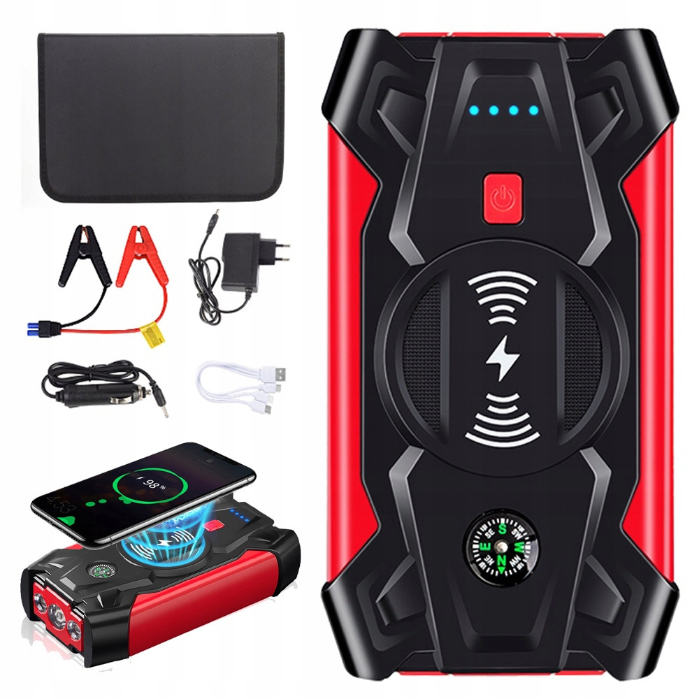 BOOSTER POWERBANK ZAGONSKEGA ZAGONA 800A 20000MAH 12V z LED svetilko je popoln pripomoček za vaše vozilo. Ta naprava ne samo, da omogoča zagon vozila v sili, ampak tudi služi kot prenosna polnilna postaja za vaše mobilne naprave. Z možnostjo brezžičnega polnjenja telefonov je ta booster powerbank vsestranski in praktičen dodatek za vsakega voznika.
