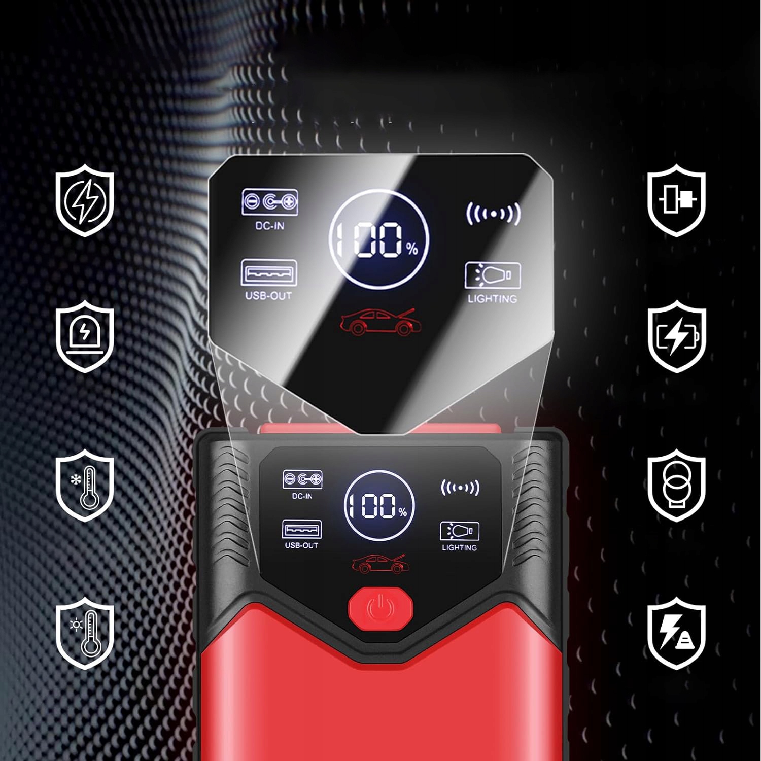 Wbudowany system ochrony zapewnia ponad 8 rodzajów zaawansowanej ochrony, w tym ochronę przed odwrotną polaryzacją, ochronę nadprądową, ochronę przed przeciążeniem, ochronę przed przepięciem itp. Wyposażony w wyświetlacz mocy, przełącznik dotykowy wyświetla pozostałą moc. Pełny wyświetlacz LCD, bardzo technologiczny.