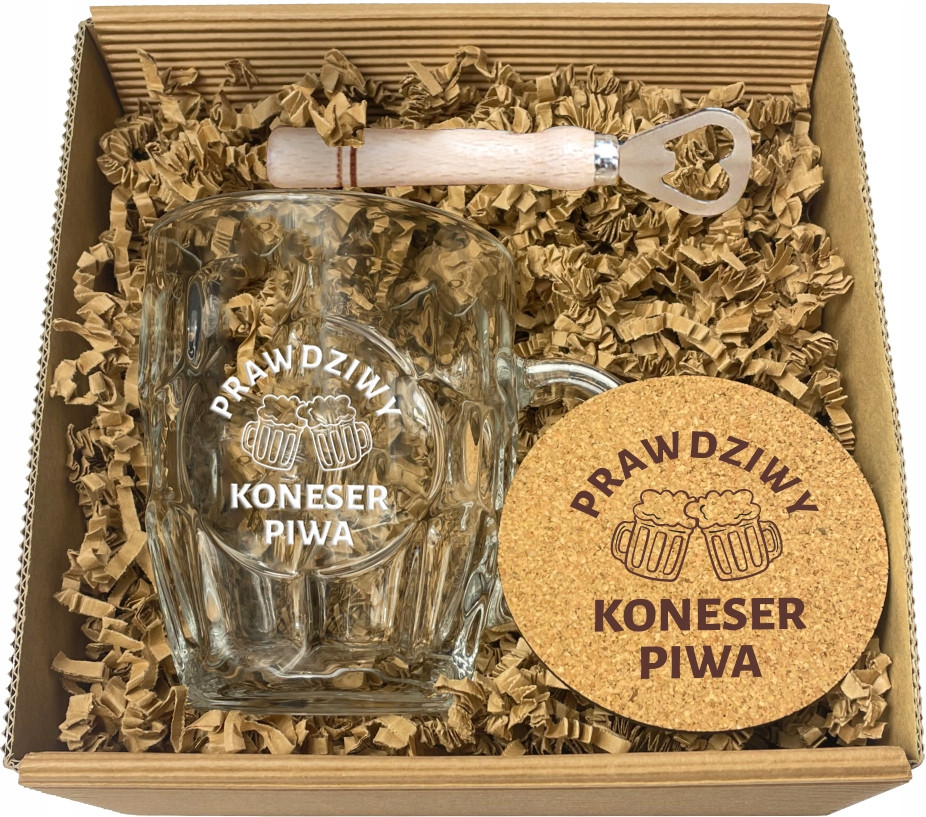 Na kuflu znajduje się wysokiej jakości grawer laserowy z napisem "Prawdziwy Koneser Piwa"