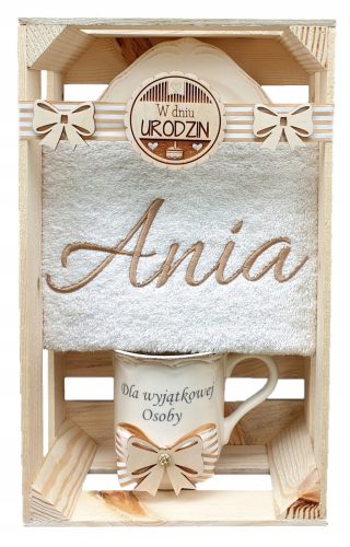 Dzięki możliwości podania dowolnego imienia, które pojawią się na ręczniku w formie haftu.