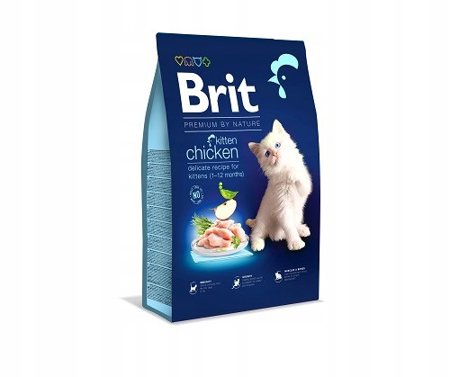 Pełnoporcjowa karma Brit Premium Kitten przeznaczona dla kociąt i młodych kotów, w wieku od 1 do 12 miesięcy, odpowiednia również dla kotek w okresie ciąży lub laktacji.