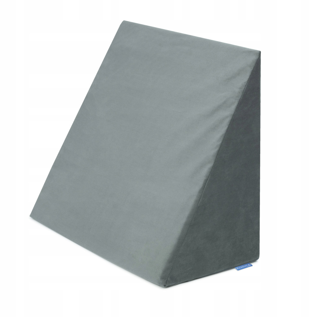 Poduszka w kształcie klina. Wykonana z wysokoelastycznej gąbki. Dla jeszcze większego komfortu posiada z wierzchu warstwę pianki termoelastycznej, która dopasuje się do krzywizn ciała. Dzięki piance wysokiej jakości poduszka nie zapadnie się ani nie odkształci. Kanaliki wentylacyjne zapewniają przepływ powietrza.