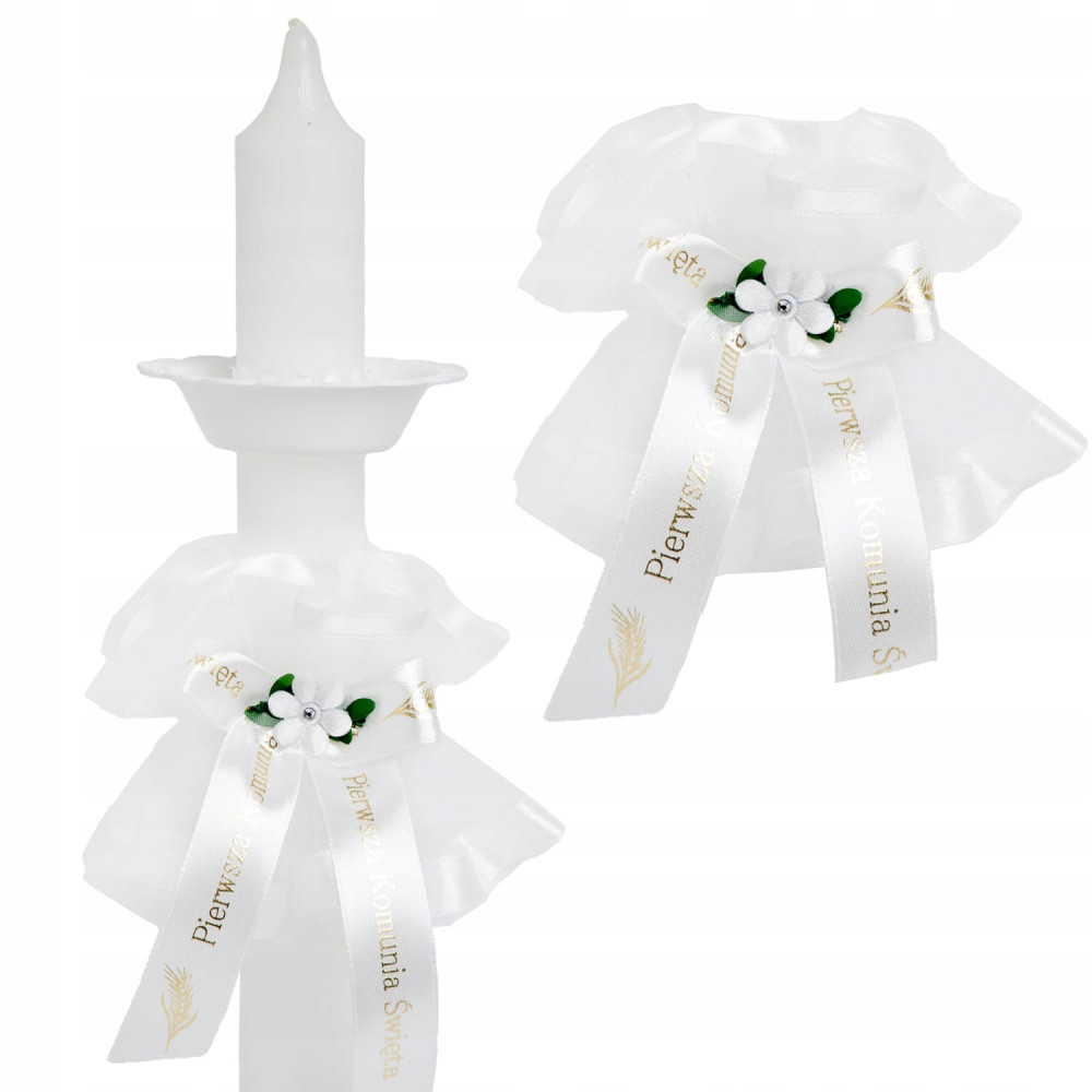 Biały, delikatny stroik na świecę. Piękny element dekoracyjny, który doda uroku każdej świecy. Idealna ozdoba do gromnicy komunijnej.