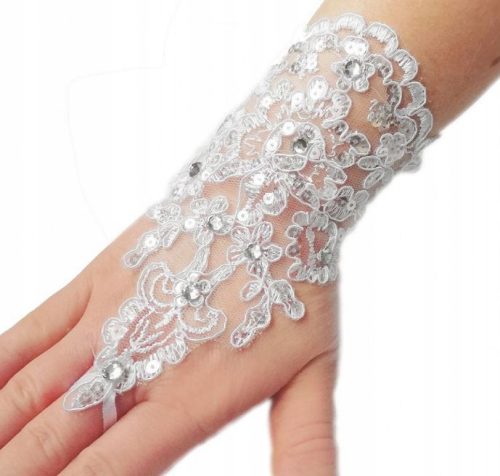 Wysokiej jakości rękawiczki koronkowe na komunię wykonane z ozdobnych cyrkonii i koronki.