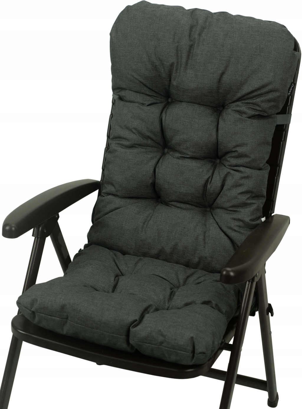 Poduszka na krzesło ogrodowe SIENA mocowana jest do fotela za pomocą gumy i troczków.