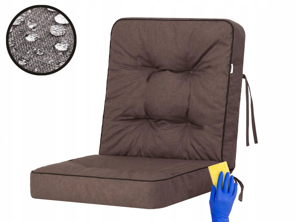Nasz produkt pasuje do większości huśtawek, ławek ogrodowych, foteli i leżaków. Wykonany został z największą starannością, uszyty i wypchany na maszynach ręcznych. Małe poduszki posiadają ściągany pokrowiec, który umożliwia wypranie go w pralce. Niestety poduchy, z racji gabarytów należy czyścić w inny sposób. Tkanina wykorzystana do produkcji jest wytrzymała. Nie odbarwia się i w przypadku większości zabrudzeń do ich usunięcia wystarczy wilgotna ściereczka.