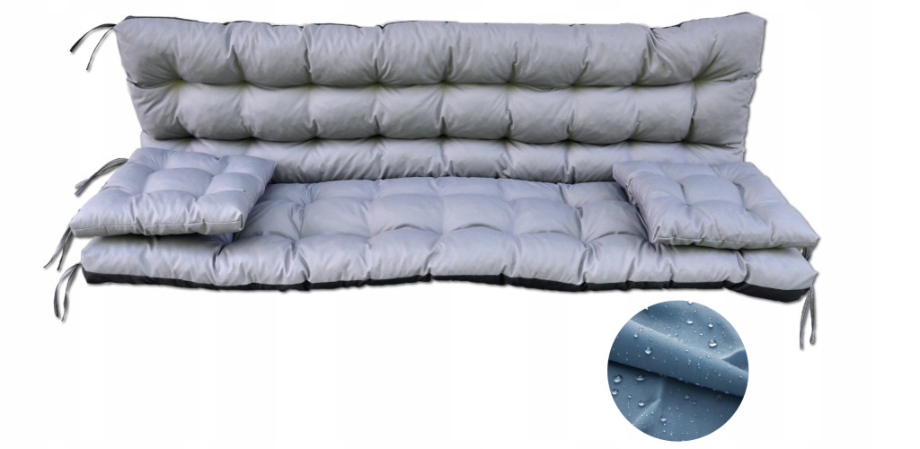 Szara Wodoodporna dekoracyjna poduszka na huśtawkę ogrodową ze sznurkami do wiązania. Idealna na taras lub do ogrodu.