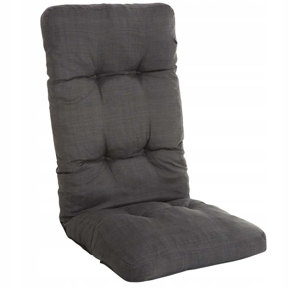 Poduszka marki Patio w szarym deseniu, na fotel. Typ poduszki to box model wypełniony gąbką typu flocke. Wierzch poduszki wykonany został z tkaniny poliestrowo-bawełnianej, spód z lutrasilu - łączone pasem tkaniny bawełnianej. W tylnej części oparcia i siedziska posiada kieszeń umożliwiającą mocowanie do stelaża.
