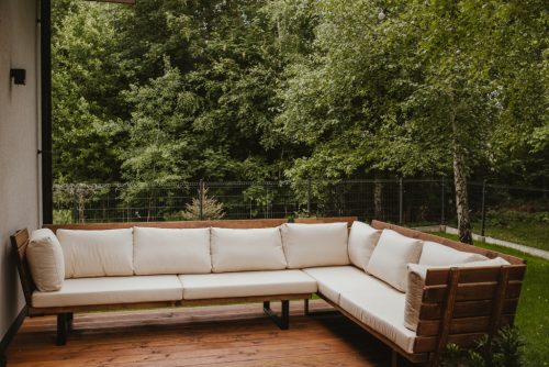 Poduszki ogrodowe, wykonane z pianki poliuretanowej grubości 10cm. Poszewki uszyte z tkaniny outdoorowej z suwakiem dzięki czemu można poszewkę ściągnąć i ewentualnie wyprać.