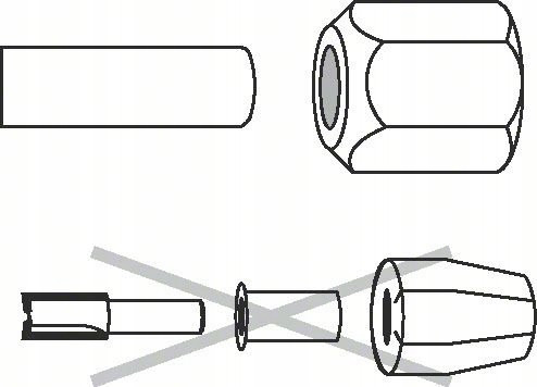 Wskazówka: Zalecamy stosowanie odpowiednich zacisków zaciskowych do frezów O i nie pracować z tulejami wału.