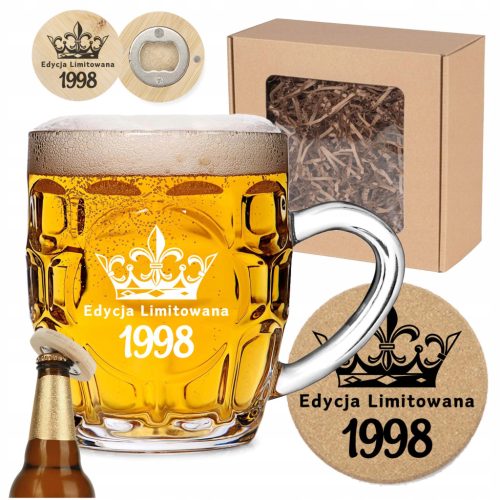 Zestaw Kufel do piwa z grawerem Podkładka + Otwieracz to doskonała propozycja dla miłośników piwa, którzy cenią sobie zarówno funkcjonalność, jak i estetykę. Kufel wykonany został z wysokiej jakości szkła, co zapewnia jego trwałość oraz elegancki wygląd. Grawer na kuflu nadaje mu unikatowego charakteru, co sprawia, że idealnie sprawdzi się jako prezent na Dzień chłopaka