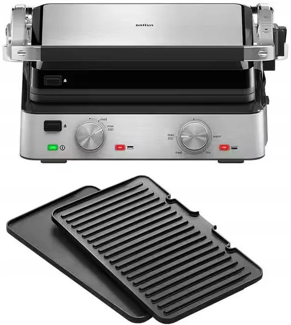 Ciesz się doskonałymi rezultatami grillowania na śniadanie, obiad, kolację i przekąski. Pokochasz wszechstronność, jaką daje (inteligentne) połączenie trzech rodzajów płyt i trzech pozycji gotowania. MultiGrill 7 zapewnia dwie elastyczne powierzchnie do gotowania, dzięki czemu możesz tworzyć pyszne posiłki dla maksymalnie 6 osób. Warzywa, mięso, ryby czy smaczna bruschetta – ty decydujesz. Skorzystaj z mocy 2000 watów do szybkiego nagrzewania i doskonałych rezultatów grillowania oraz ciesz się wbudowanymi elementami grzejnymi do jeszcze szybszego i równomiernego gotowania.