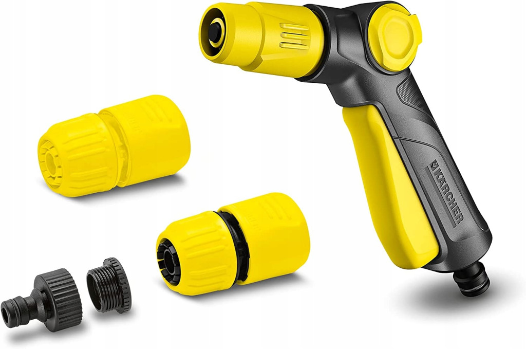 Pistolet znacznie ułatwia podlewanie, skutecznie zastępując nieporęczną i ciężką konewkę. Spust można łatwo zablokować dla ciagłego podlewania. W zestawie z szybkozłączami i adapterem na kran. W zestawie znajdziemy: pistolet spryskujący (2.645-265.0), szybkozłącze dla węża 1/2” oraz 5/8”, szybkozłacze z Aqua Stop dla węża 1/2” oraz 5/8”, adapter na kran G 3/4 z redukcją G 1/2.
