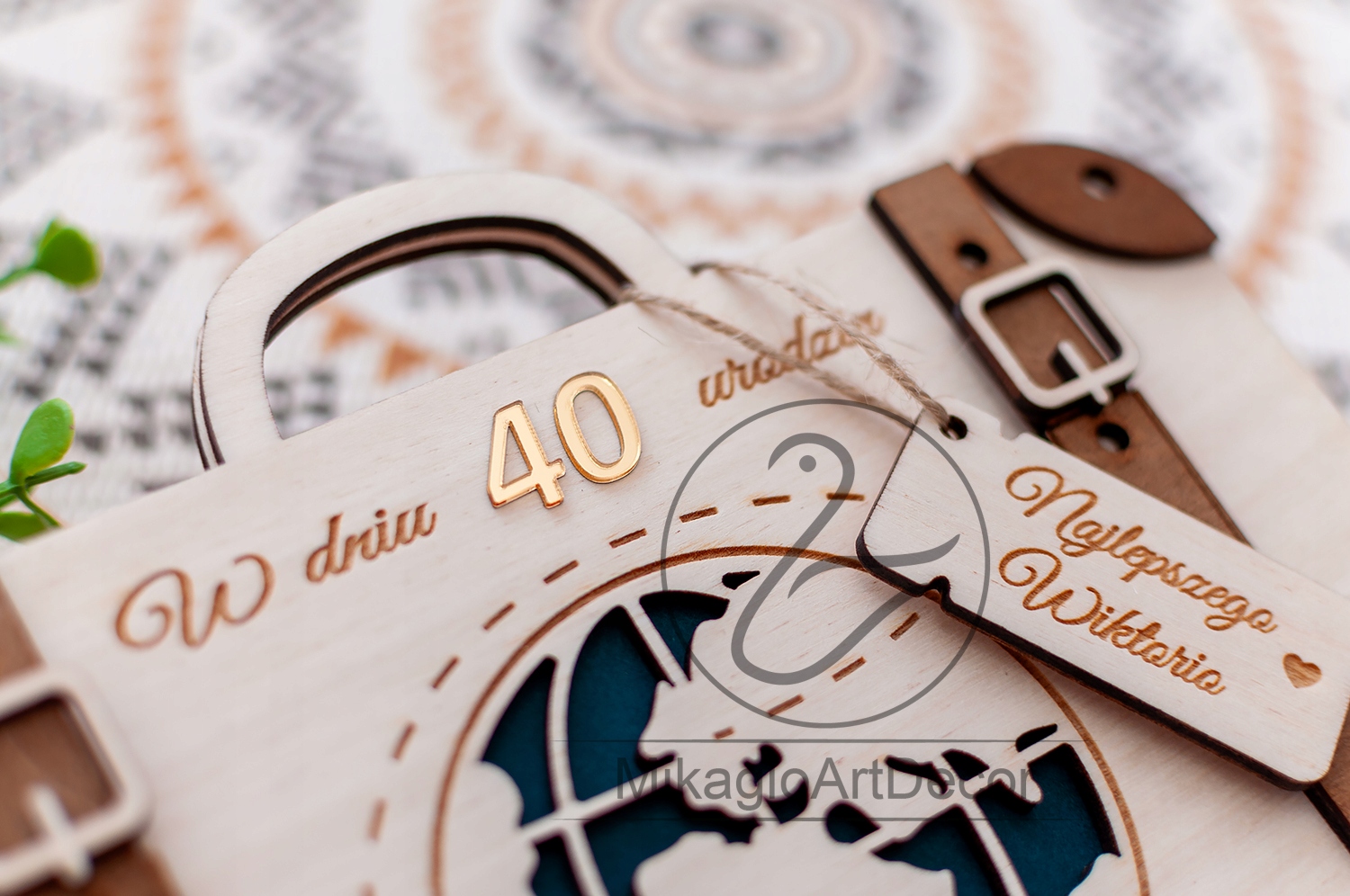 ✅ Front kartki stworzony tak, by jak najbardziej odwzorowywał podręczną walizkę podróżną,