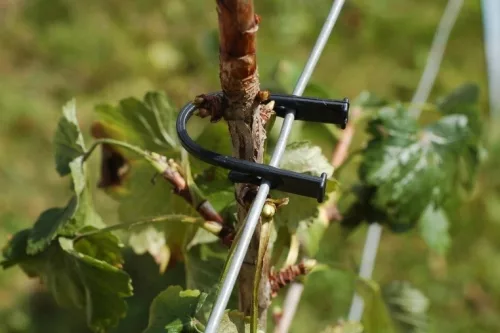 Ten idealny uniwersalny zacisk może być używany w uprawie winorośli, sadownictwie i ogrodnictwie, może być używany do mocowania młodych roślin do drutu napinającego.
