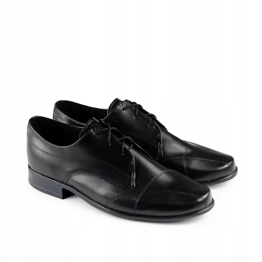 Klasyczne, czarne buty komunijne dla chłopca. Buciki dobrze wyprofilowane, dzięki czemu są bardzo wygodne. Zewnątrz obuwie wykonane z miękkiej skórki ekologicznej, natomiast wkładka ze skóry naturalnej. Uniwersalne buty, które będą pasować zarówno do eleganckiego garnituru komunijnego, jak i do klasycznej alby lub komży.