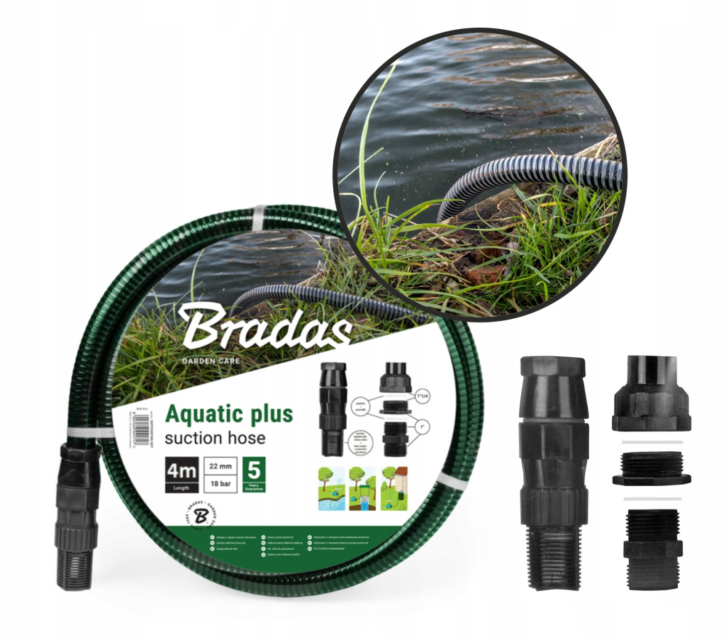 • wąż spiralny z PVC w komplecie z filtrem i koszem ssącym z zaworem zwrotnym