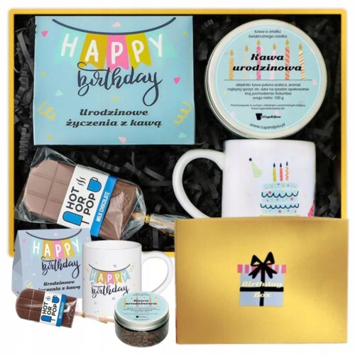 • Całość zapakowana w dedykowane opakowanie prezentowe z urodzinowymi akcentami z dołączoną wiadomością/życzeniami