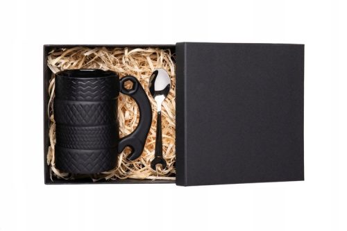 Przedstawiamy wyjątkowy kubek ceramiczny w kształcie opony, którego pojemność wynosi 450 ml. Ten oryginalny produkt jest idealnym połączeniem funkcjonalności i pasji do motoryzacji. Zestaw zawiera również łyżeczkę w kształcie klucza płaskiego, co dodatkowo podkreśla motoryzacyjny charakter produktów.