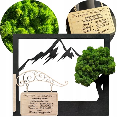 ✌️Nasze Drzewo Życia, które wzbogaciliśmy o mech, wprowadza element natury i świeżości. Połączenie tego symbolu z mchem sprawia, że każda kompozycja jest wyjątkowa i żywa, oddając hołd naturalnym cyklom i nieprzemijającej wartości relacji rodzinnych.