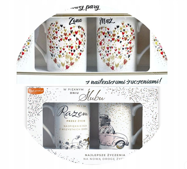 DARILO ZA OBLETNICO POROKE | Gravirane skodelice za romantičen in praktičen dar za posebne priložnosti. Ta set vključuje dva porcelanasta kozarca s po 280 ml prostornine, ki sta pakirana v elegantno e