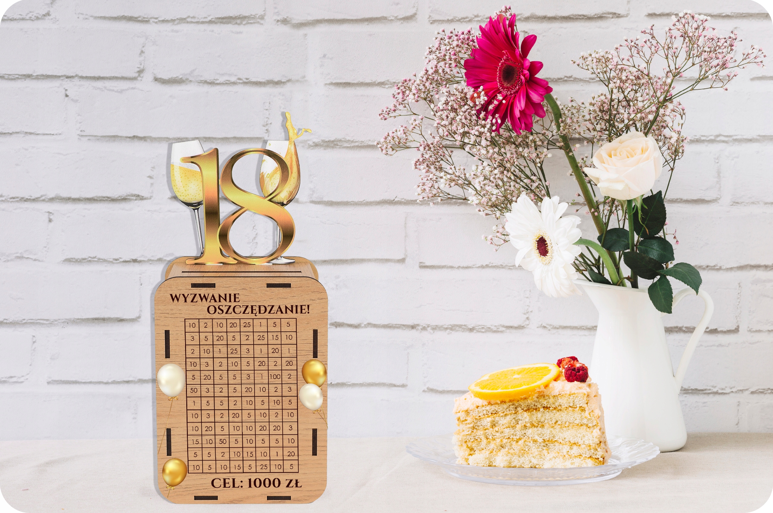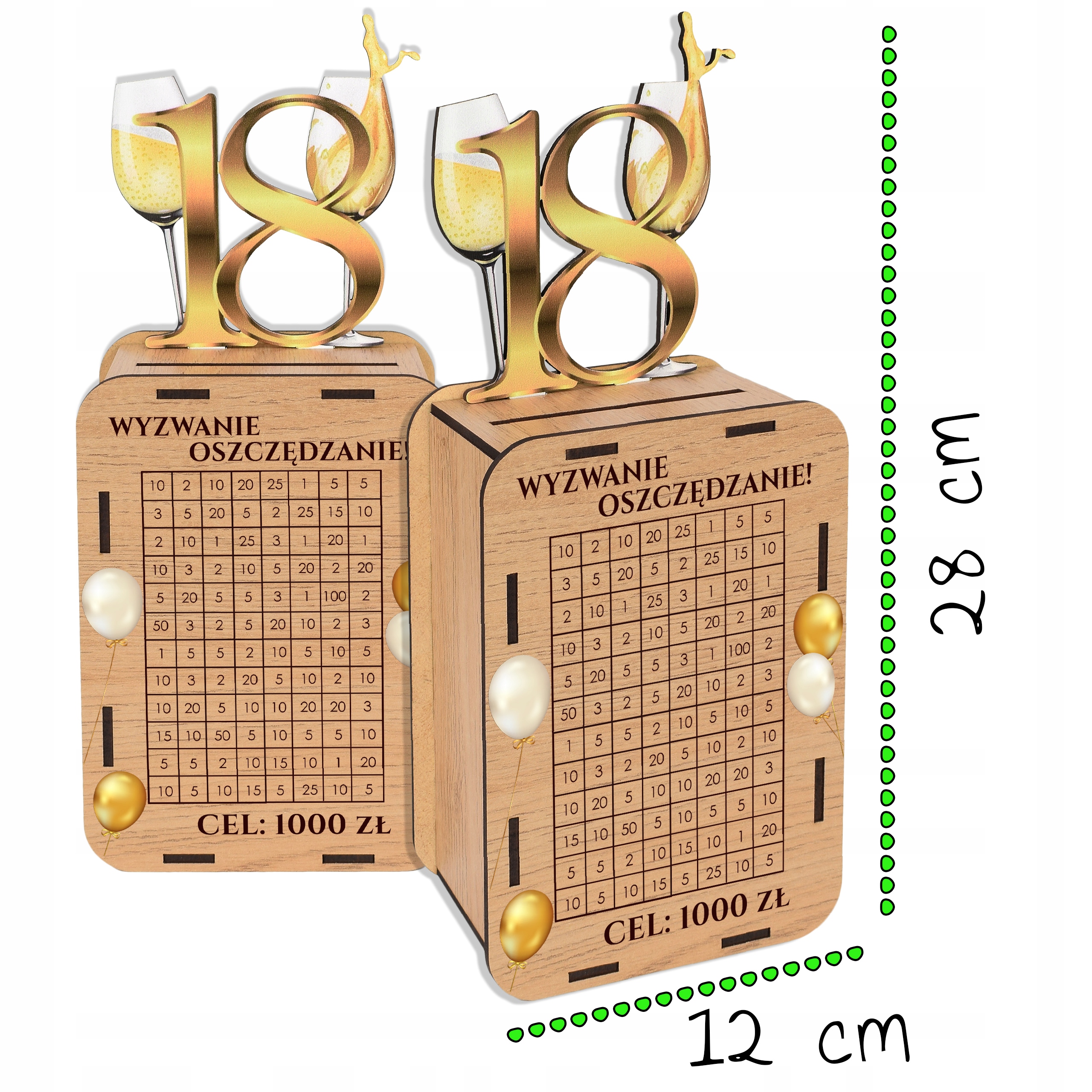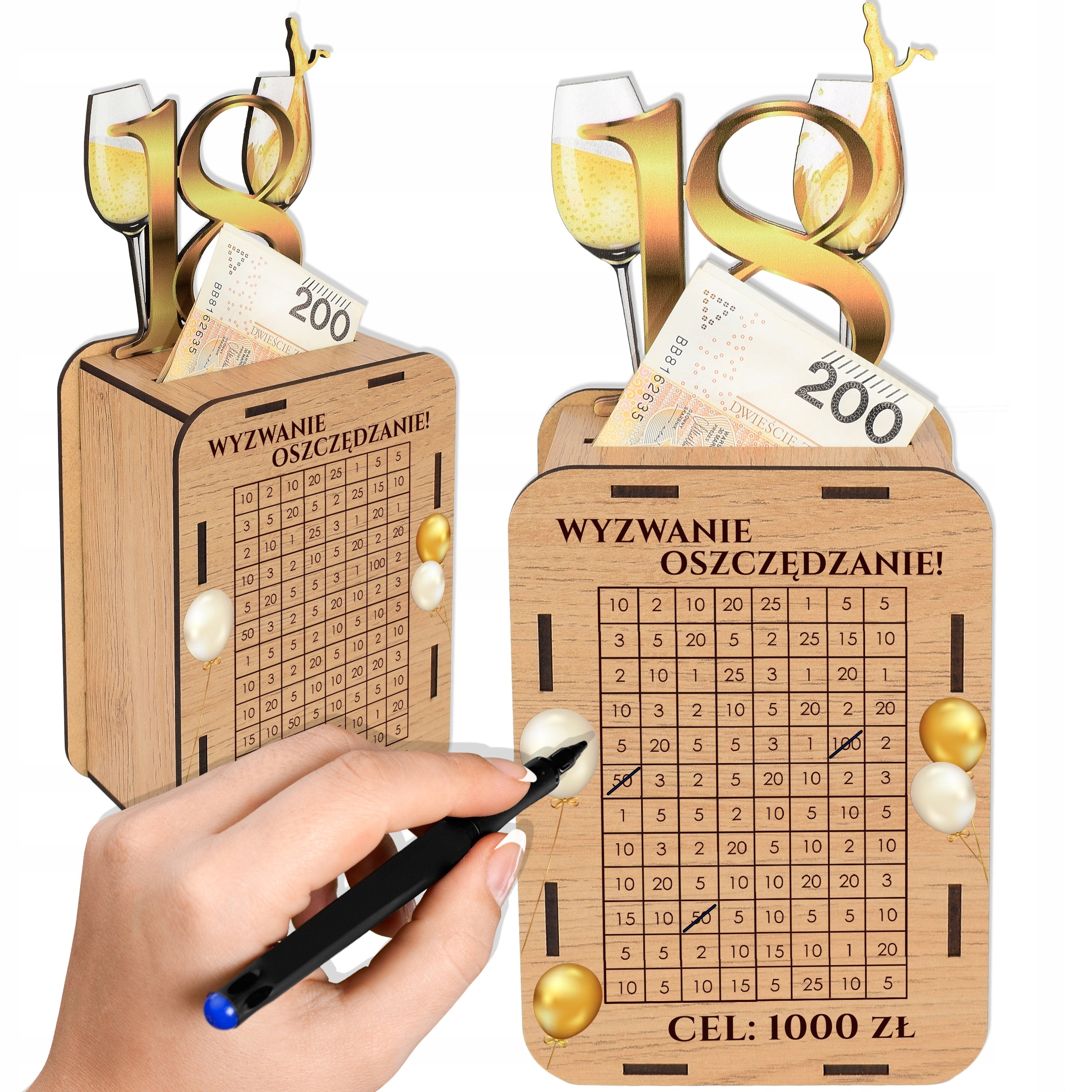 Stylowa drewniana skarbonka, wykonana z najwyższej jakości materiałów, to nie tylko praktyczny sposób na oszczędzanie, ale także wyjątkowy prezent na 18-naste urodziny. Dzięki możliwości wykreślania oszczędności, każdy krok w stronę celu staje się motywującą przyjemnością!